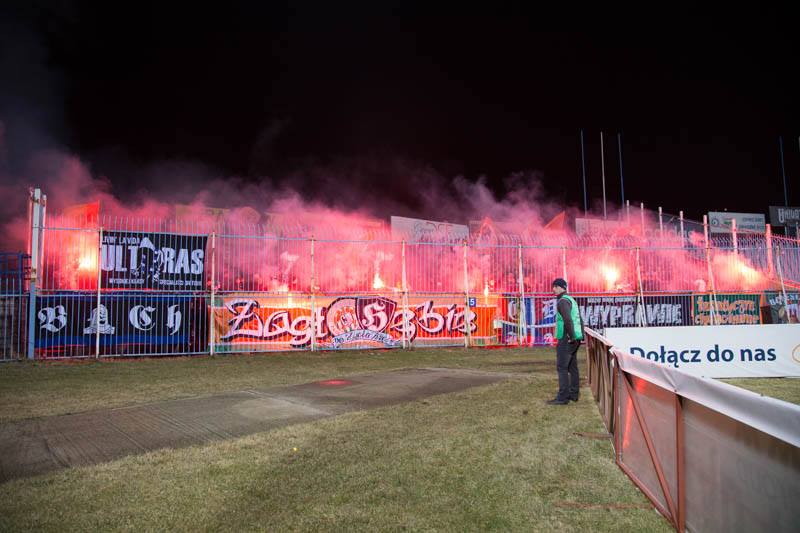 Po względnie udanej piłkarsko jesieni, wszyscy ostrzymy sobie zęby na awans. Jedną z największych przeszkód w powrocie do ekstraklasy jest właśnie Wisła, z którą mierzyliśmy się w ostatni weekend. Świadomość tego, zapowiadane dobre wsparcie zgód oraz nasza chęć powrotu na stadion po trzymiesięcznym rozbracie ze szlakiem wyjazdowym zwiastowały pojawienie się w Płocku w bardzo dobrej liczbie. I tak właśnie się stało! Po dość długiej i spokojnej trasie, meldujemy się w „Stolicy polskiej petrochemii” w 430 głów, a doliczając do tego 220 kiboli Zawiszy, 35 Odry oraz 5 Arki – zbliżyliśmy się do liczby 700 osób! Jako fch również możemy pochwalić się dobrą liczbą, było nas 42.